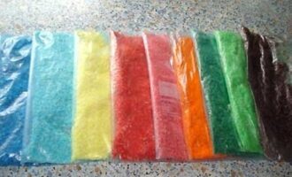– — Если у вас под рукой нет цветной кокосовой стружки, можно обычную белую стружку немного подкрасить соком фруктов или ягод. Например, соком граната или клубники. Достаточно несколько капель сока капнуть на стружку и тщательно ее перемешать. После чего выкладываем ее на салфетку и немного сушим при комнатной температуре.