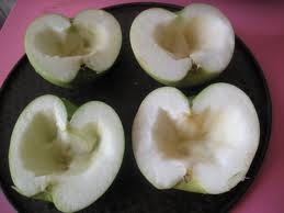 - Берем сладкие яблоки. Обмываем их под холодной проточной водой, затем обтираем бумажными полотенцами. Свежие яблоки очищаем от кожицы.