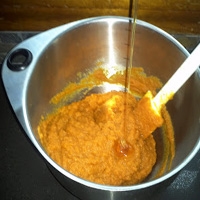 - Уложите ингредиенты в блендер и измельчите до консистенции пюре. Потратьте на этот процесс столько времени, сколько понадобиться, пускай ваше тыквенное – яблочное пюре будет идеальным без комочков и мелких крупинок.