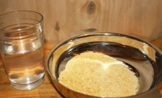- Высыпьте 30 гр. желатина в небольшую тарелку. Медленно добавьте 100 мл. охлажденной кипяченой воды и оставьте на 30 минут на столе. По истечении времени, аккуратно слейте излишки жидкости.