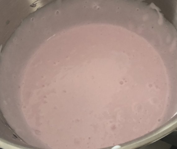 - Взбейте сметану со 100 миллилитрами разведенного клубничного желе.