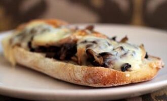 Сегодня приготовим отличный завтрак – сочный горячий бутерброд на хрустящем батоне. По вкусу начинка напоминает