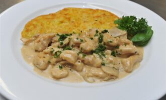 Если у вас есть гарнир, но вы не знаете чем его дополнить, предлагаем приготовить курицу с грибами в сливочном соусе.