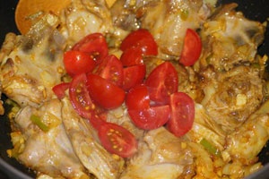 - Дальше отправляем туда помидоры и тушим блюдо 30–40 секунд.