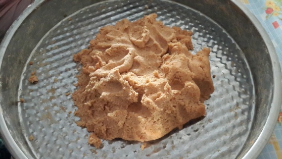 - Итак, время приступить к формированию блюда. Вначале возьмите основу, примерно одну столовую ложку, в ладонь, скатав ее сперва в шар, разомните в лепешку, пальцами другой руки делая в ней небольшое углубление. Будьте осторожны, получившаяся заготовка должна быть плотной, небольшой толщины и без мелких дырочек.