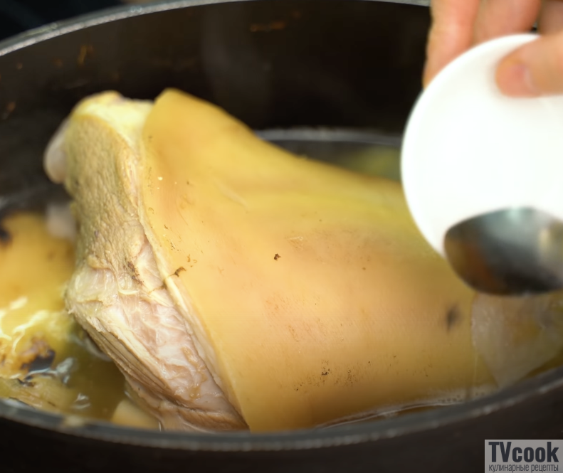 Свиная рулька по этому рецепту – отличная мясная закуска из доступной части свинины. Такая домашняя ветчина подойдет и вместо