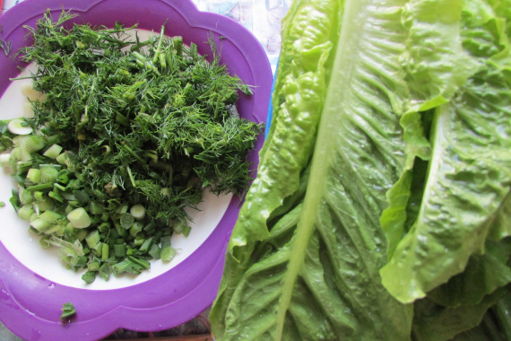 - Зелень промойте и нарежьте, отложив немного укропа для подачи.