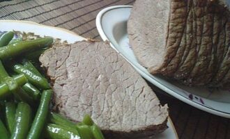 Перевязывание мяса требуется для облегчения его нарезки после приготовления. Поэтому берем бечевку и плотно обматываем кусок телятины.