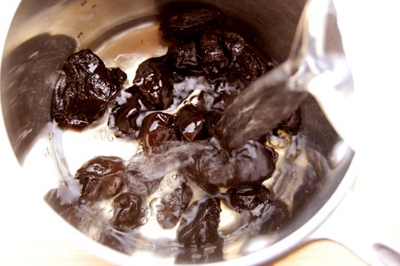 Для начала промываем ингредиент под проточной теплой водой и выкладываем его в миску. Заливаем теплой водой так, чтобы она полностью покрывала курагу или чернослив. Оставляем в таком состоянии компонент на 5 минут. Затем сливаем воду, но не спешим готовить компот, так как наши сухофрукты должны, как следует размякнуть. Поэтому снова заливаем все теплой водой и ждем 5 минут. И после – снова повторяем процедуру сначала. Достаточно 2-3 раза залить водой компонент, чтобы он стал мягкий.