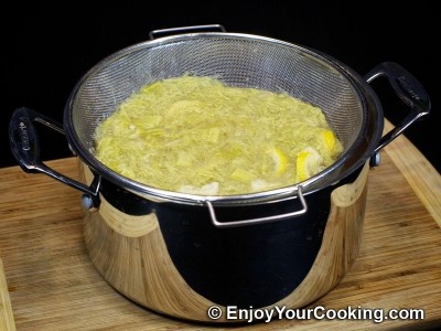 Затем выключаем огонь, прикрываем кастрюлю крышкой, так чтобы осталась небольшая щель, и настаиваем ее содержимое в таком виде 2 часа.