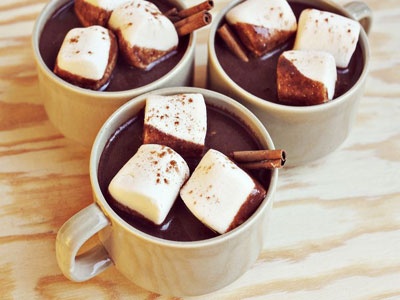 - Горячий шоколад с корицей подается в горячем виде. По желанию перед подачей в каждую чашку с ароматным напитком кладут 1 палочку корицы вместо чайной ложки и 2 – 3 кусочка зефира для более насыщенного вкуса.