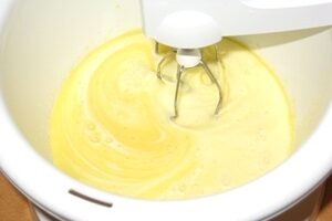 - К взбитой смеси желтков добавьте охлажденное молоко и воду. Взбейте до однородности.