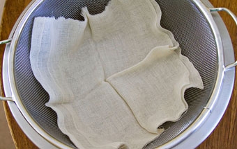 - Перед тем, как мы будем процеживать нашу цитрусовую массу, возьмем дуршлаг и застелим его дно марлей, а под низ его поставим кастрюлю, в которую будет переливать наш сок. Не спеша и аккуратно переливаем цитрусовую жидкость из миски через марлю и дуршлаг в емкость, стоящую внизу. Затем, когда сок весь стечет, берем марлю и отжимаем вручную с нее жмых. Жмых перекладываем из марли в сторону. Что касается кастрюли с нашим напитком? Ее мы тоже отставляем в сторону на 20 минут для того, чтобы осадок из под напитка слегка осел на дно емкости.