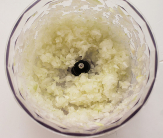 - Измельчите репчатый лук.