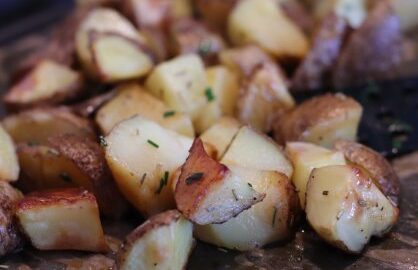 • Затем аккуратно переверните картофель (не перемешайте, а именно поддевайте снизу и переворачивайте), полейте оставшимся маринадом и верните в духовку. Запекайте еще 20 минут.