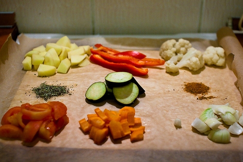 - Приправьте овощи свежемолотым чёрным перцем перед запеканием.
