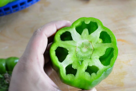 - Теперь осталось только сполоснуть и обсушить полый перец. Проделайте все то же самое с оставшимися овощами, чтобы у вас получилось 5 готовых для фарширования перцев.