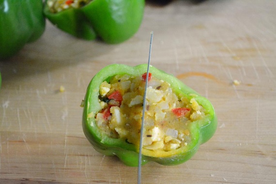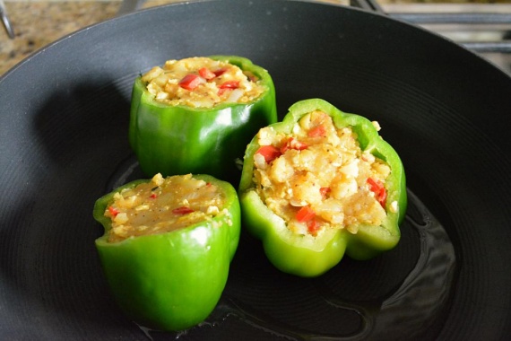 - Снимите начинку для перцев с огня и подождите, пока она полностью остынет, прежде чем начинять ей перцы.