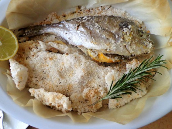 Дорада, запеченная в вине с травами — приятная и очень вкусная рыба, для праздничного стола или для романтического
