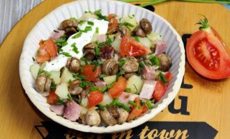 Салат с картофелем, грибами и ветчиной — аппетитный салат, который можно подавать на ужин. Отличное сочетание