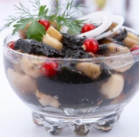 Как приготовить рецепт Салат с морской капустой и грибами