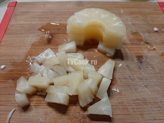Этот салат из копченой курицы и ананасов сочетает сочность фруктов и пикантность копченостей. Хрустящий болгарский перец