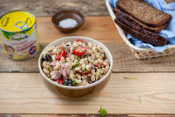 Попробуйте очень вкусный и очень сытный салат с макаронами, фасолью и тунцом. Полезный и питательный обед для всей семьи. Это блюдо подойдет даже тем, кто сидит на диете. Оно богато необходимыми для нашего организма питательными веществами, так что если хотите после обеда чувствовать себя бодро, приготовьте этот салат.