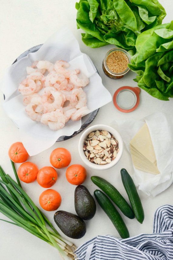 подаем азиатский салат с креветками-гриль и хрустящими вонтонами