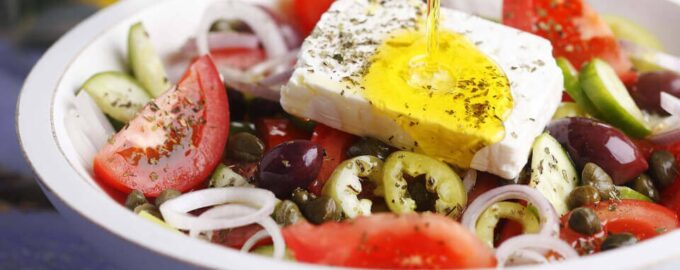 Греческий салат классический заслуженно входит в топ 10. Греческий салат в домашних условиях готовится довольно быстро и легко, ведь это обычный деревенский салат из свежих овощей и сыра фета (брынза). Заправка для греческого салата очень важная составляющая и в этом рецепте мы поделимся двумя основными рецептами заправки для греческого салата в домашних условиях. Еще одним плюсом этого салата является то, что данный салат готовится без майонеза и если вдруг вы хотите приготовить легкие салаты без майонеза обязательно попробуйте наш вариант. Овощные салаты без майонеза обязательно оценят любители здорового питания, так что этот рецепт специально для вас.
