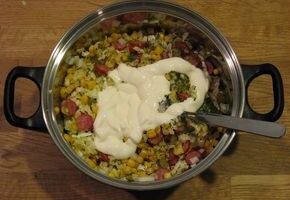 - Не добавляйте слишком много соли, так как колбаса и огурцы уже содержат соль.