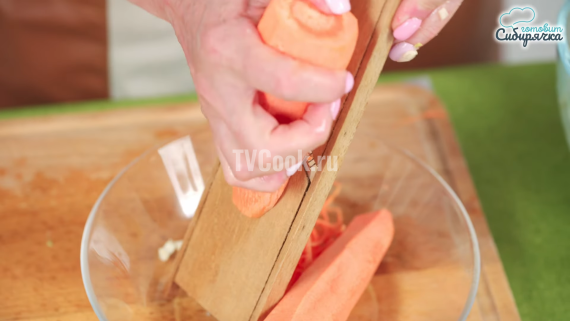 Натираем в глубокую миску на корейской терке 200 гр. очищенной моркови.