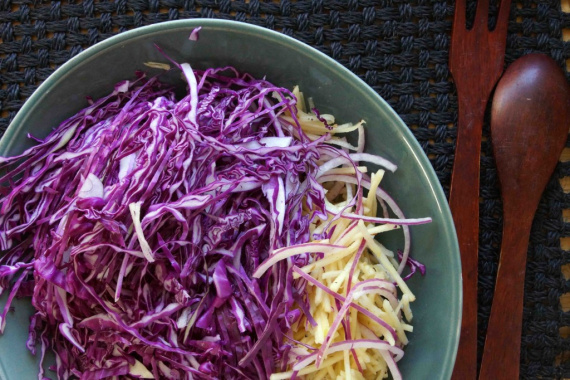 – Если салат немного постоит в холодильнике, он станет только вкуснее, так как капуста и яблоки замаринуются в заправке.