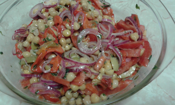 Салат с нутом и овощами — это потрясающее блюдо, которое подойдет к обеду и как основное, и как вкусное дополнение. Отличный вариант для постного стола или для тех, кто на диете. Попробуйте и вам обязательно понравится. Приятного аппетита!