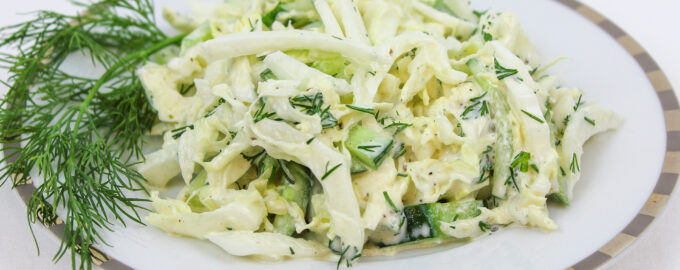 Витаминный салат — это простое и полезное блюдо из свежих овощей, такое как капуста, морковь и огурцы. Отличный выбор для