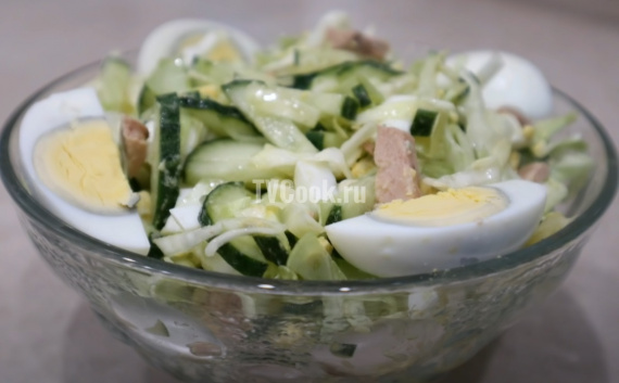Овощной салат с печенью трески готов! Всем приятного аппетита!