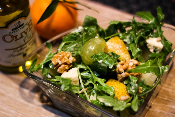 Заправляем салат из рукколы с виноградом и голубым сыром