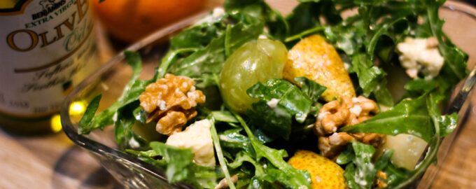 Смешиваем салат из рукколы с виноградом и голубым сыром