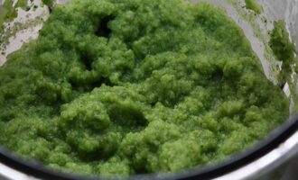 Выкладываем в блендер крупно порезанную свежую зелень, очищенный от семян зеленый острый стручковый перец и помытые очищенные грецкие орехи. Измельчаем до однородной кашицы. Далее, выкладываем измельченные ингредиенты в миску и добавляем соли. Хорошо вымешиваем массу столовой ложкой. Душистая аджика зеленая готова!