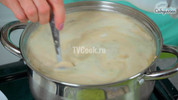 Убираем образовавшуюся пену из кастрюли с грибами, затем закрываем ее крышкой и продолжаем варить грибы на среднем огне плиты.