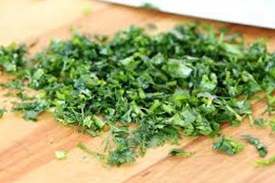 Кинзу промываем под проточной водой, отряхиваем от лишней жидкости и выкладываем на разделочную доску. Воспользовавшись ножом, мелко рубим зелень и сразу же пересыпаем ее в свободное блюдце. Внимание: такую траву добавлять в суп совершенно не обязательно. Если вы не любите кинзу, тогда ее можно заменить петрушкой или же вообще обойтись без нее.