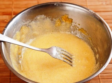 - Смешайте в тарелке желтки, сметану, муку и половник бульона, зачерпнутый из супа. Перемешивайте все, пока консистенция не станет однородной.