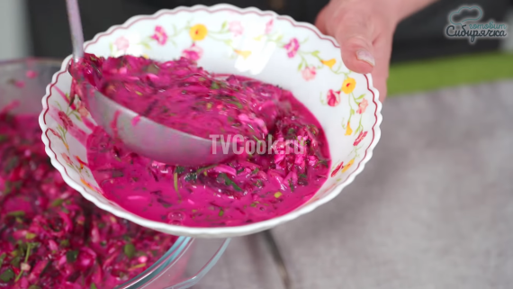 - Готовим классический холодный свекольник на кефире с минеральной водой.