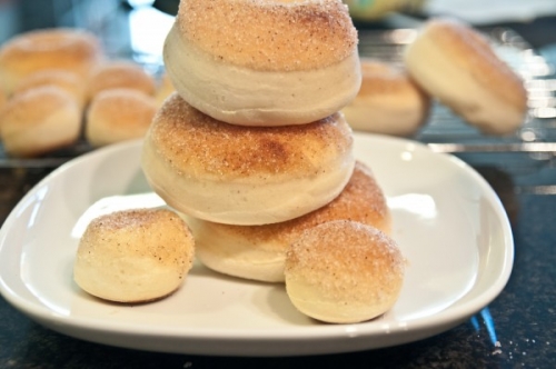 – – Необязательно посыпать донаты сахаром, смешанным с корицей и обмакивать их в сливочное масло. Вы можете обмакнуть их в растопленный шоколад и посыпать цветным сахаром, окунуть их в глазурь, приготовленную с вашим любимым вкусовым оттенком, полить сгущенкой или просто разрезать вдоль, нафаршировать любимыми ягодами и дополнить блюдо взбитыми сливками, все зависит от вашего желания!