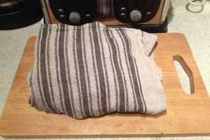 - Перемещаем ее на разделочную доску, предварительно положенную на столешницу, и даем выпечке возможность слегка остыть в течение 15–20 минут. Затем, воспользовавшись деревянной кухонной лопаткой, поддеваем готовый хлебушек, перекладываем его из чаши на разделочную доску и укутываем в вафельное либо любое другое тонкое полотенце, так чтобы осталась щель шириной не менее 4–5 сантиметров, а можно и больше. Оставляем его в таком виде на несколько часов до полного остывания и потом дегустируем!