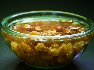 - После перекладываем его в миску и заливаем теплой водой. Пусть постоит в таком состоянии 20-40 минут. За это время ягодки расправятся, станут более красивые и с них выйдет грязь или другие добавки, которыми обрабатывают виноград перед сушкой. По истечению отведенного времени сливаем воду через дуршлаг, а сам изюм хорошо протираем бумажным полотенцем.