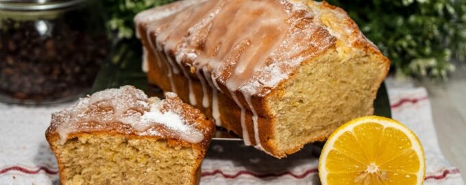 • Через определенное время достаем форму из духовки и выкладываем кекс на стол, затем поливаем его сверху приготовленным сахарно-лимонным сиропом. Нарезаем кекс порционными кусочками и подаем к столу для душевного чаепития.