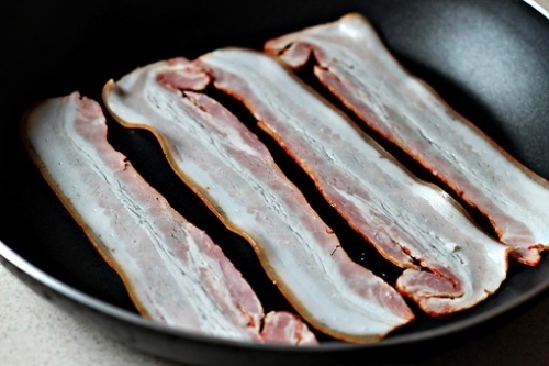 - Используйте сковороду с толстым дном для равномерного обжаривания бекона.