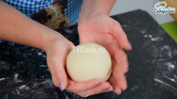 Выкладываем тесто на присыпанный небольшим количеством пшеничной муки стол, после чего слегка его обминаем и формируем.