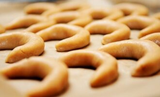 - Разделите тесто на равные части, формируя из каждой по 6-7 см колбаски. Придайте желаемую форму. Застелите противень бумагой для выпечки и выложите заготовки. Выпекайте в духовке при 170 °C 15-20 минут до золотистого цвета.