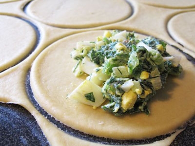 – – В начинку можно класть любые нравящиеся вам специи и травы. Также можно добавлять свежий нашинкованный укроп или петрушку.